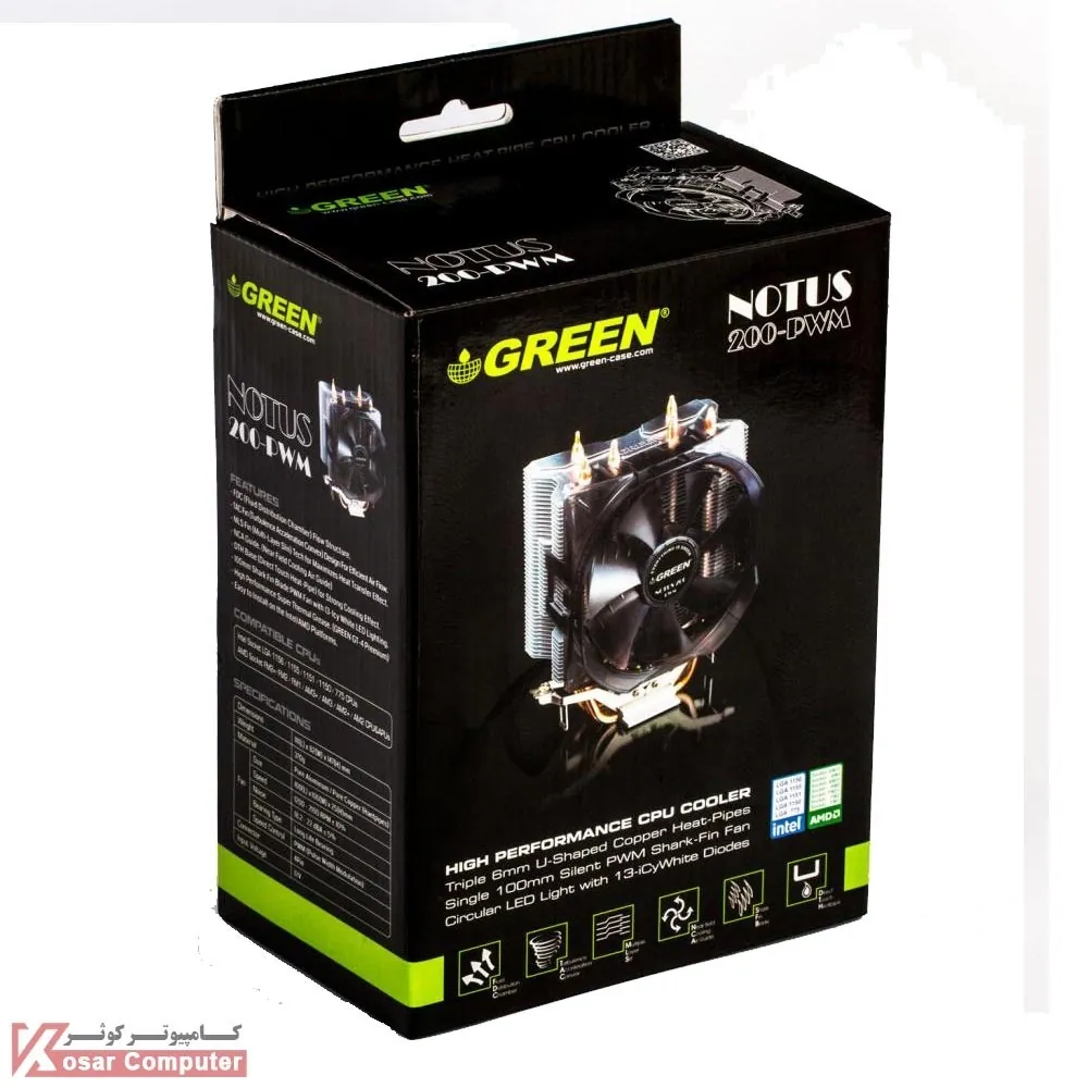 خنک کننده بادی گرین مدل NOTUS 200-PWM مناسب برای سیستم های خانگی و گیمینگ است.این خنک کننده مجهز به 3 عدد هیت پایپ با قطر 6 میلی متر می باشد.همچنین مجهز به نورپردازی از نوع 13xWhite LED نیز می باشد.این خنک کننده مجهز به کنترل سرعت فن است و …
