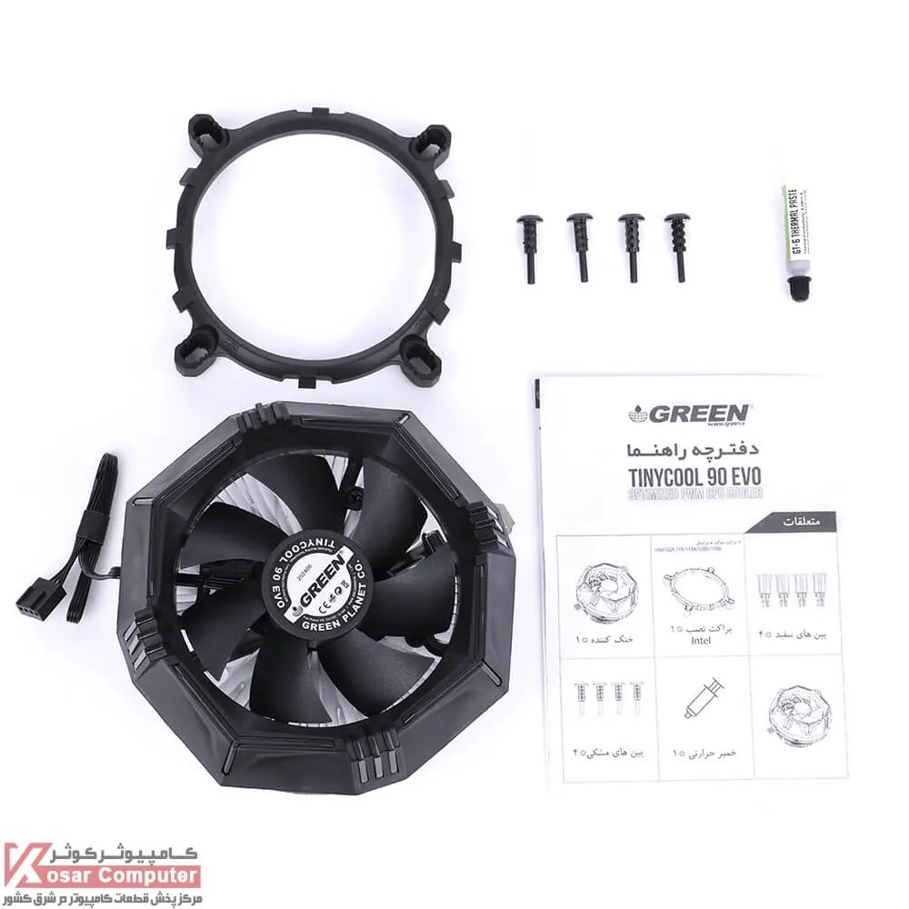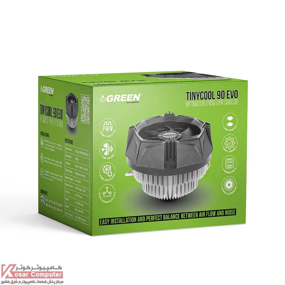 خنک کننده گرین مدل TINYCOOL 90 EVO مناسب برای پردازنده هایی است که فاقد فن می باشند.این فن مناسب برای سیستم های خانگی و اداری است.این فن شامل 76 پره با آلیاژ هیت سینک از جنس آلومینیوم و سرعت 2200 دور در دقیقه است.همچنین قابلیت کنترل سرعت فن را دارد
