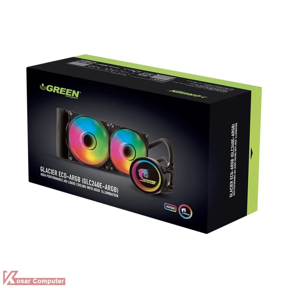 خنک کننده GLACIER 240 ECO-ARGB محصول شرکت گرین است که دارای 2 عدد فن 120 میلی متری با نورپردازی ARGB است.رادیاتور به کار گرفته شده در این کولینگ در سایز 240 میلی متری است.خنک کننده از سوکت های جدید LGA1700 و AM5 پشتیبانی می کند.