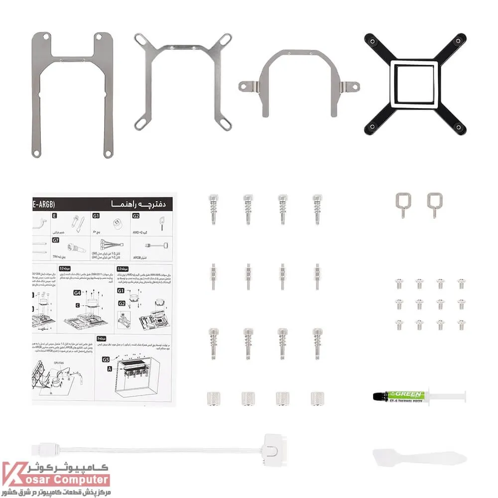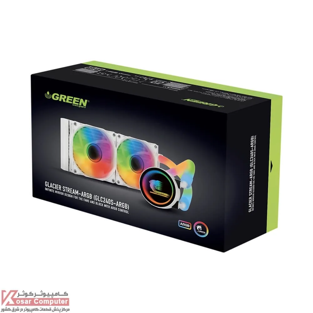 خنک کننده GLACIER 240 STREAM-ARGB محصول شرکت گرین است که سفید رنگ و دارای 2 عدد فن 120 میلی متری با نورپردازی ARGB می باشد.رادیاتور به کار گرفته شده در این کولینگ در سایز 240 میلی متری است.خنک کننده از سوکت های جدید LGA1700 و AM5 پشتیبانی می کند.