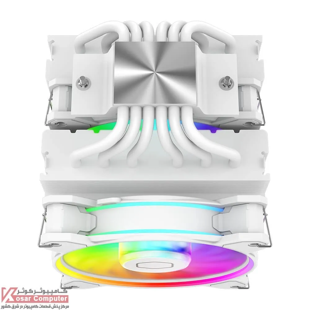 خنک کننده کولر مستر مدل Hyper 622 Halo White دارای 2 عدد فن با نورپردازی ARGB است و می توانید سیستم خود را زیبا و شخصی سازی کنید.همچنین دارای 6 عدد هیت پایپ و حداکثر سرعت 2050 دور در دقیقه نیز می باشد.