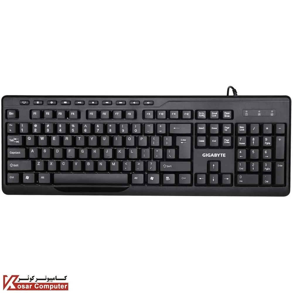 کیبورد و ماوس گیگابایت مدل KM6300 توسط یو اس بی (USB) به سیستم متصل می شود.همچنین کیورد گیگابایت دارای 104 کلید و ماوس هم دارای 3 کلید و دقت 1000 dpi نیز می باشد.طول سیم هم برابر 150 سانتی متر است.