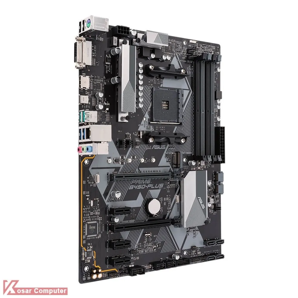 مادربرد ای ام دی ایسوس PRIME B450-PLUS از پردازنده های AMD AM4 پشتیبانی می کند.این مادربرد دارای 4 عدد اسلات رم DDR4 است و تا باس 4400 مگاهرتز حافظه رم را می توان روی آن قرار داد.همچنین دارای 1 عدد کانکتور M.2 NVME و 6 عدد پورت ساتا می باشد