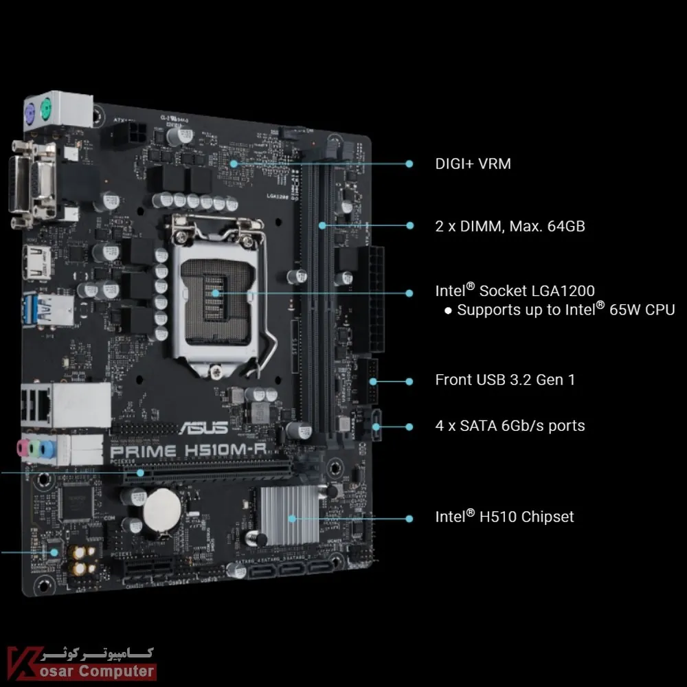 مادربرد قیمت گیگابایت مدل PRIME H510M-R-SI برای امور اداری و مصرف خانگی مناسب می باشد.این مادربرد از پردازنده های نسل 11 و 10 اینتل پشتیبانی می کند.در پنل پشتی دارای پورت HDMI , DVI و VGA به همراه پورت پر سرعت USB 3.2 نیز موجود می باشد.