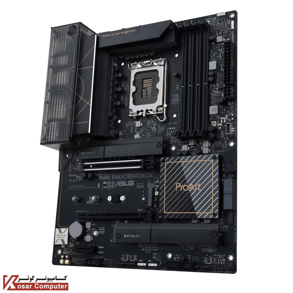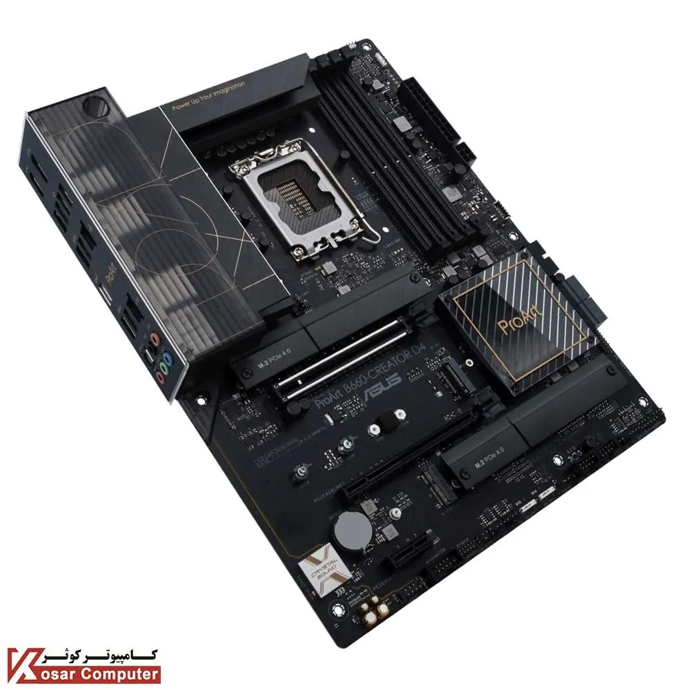مادربرد وایرلس ایسوس ProArt B660-CREATOR D4 از پردازنده های نسل 12 اینتل پشتیبانی می کند.این مادربرد دارای 4 عدد اسلات رم از نوع DDR4 است و تا باس 5333 مگاهرتز حافظه رم را پشتیبانی می کند.در پنل پشتی هم 5 عدد پورت USB 3.2 از نوع TYPE-A و TYPE-C