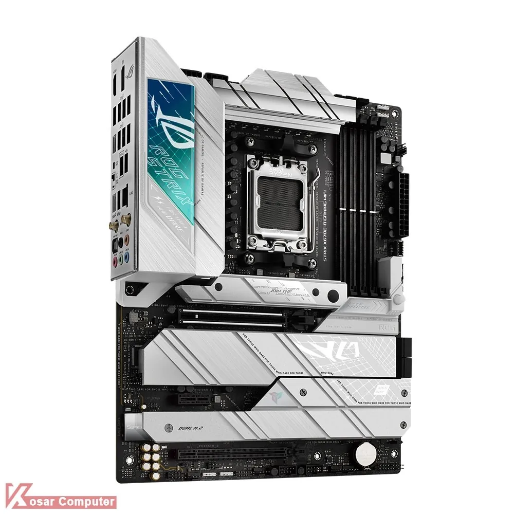 مادربرد ای ام دی DDR5 ایسوس ROG STRIX X670E-A GAMING WIFI از پردازنده های AMD AM5 پشتیبانی می کند.این مادربرد دارای 4 عدد اسلات رم DDR5 است و تا باس 8000 مگاهرتز حافظه رم را می توان روی آن قرار داد.همچنین دارای 10 عدد پورت پر سرعت USB 3.2 می باشد.