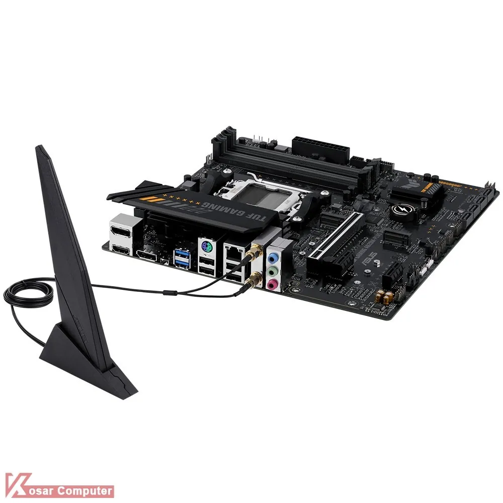 مادربرد ای ام دی DDR5 ایسوس TUF GAMING A620M-PLUS WIFI از پردازنده های AMD AM5 پشتیبانی می کند.این مادربرد دارای 4 عدد اسلات رم DDR5 است و تا باس 7600 مگاهرتز حافظه رم را می توان روی آن قرار داد.همچنین مجهز به اتصال بیسیم از طریق وایرلس و بلوتوث می باشد