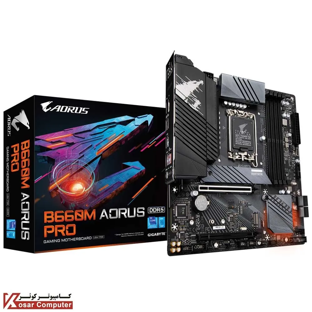 مادربرد قدرتمند گیگابایت مدل B660M AORUS PRO از پردازنده های نسل 12 اینتل و حافظه های رم DDR5 تا باس 5600 پشتیبانی می کند.همچنین دارای 6 پورت پر سرعت USB 3.2 و خروجی های تصویر HDMI و DISPLAYPORT هم می باشد.گارانتی هم 36 ماه آواژنگ است.