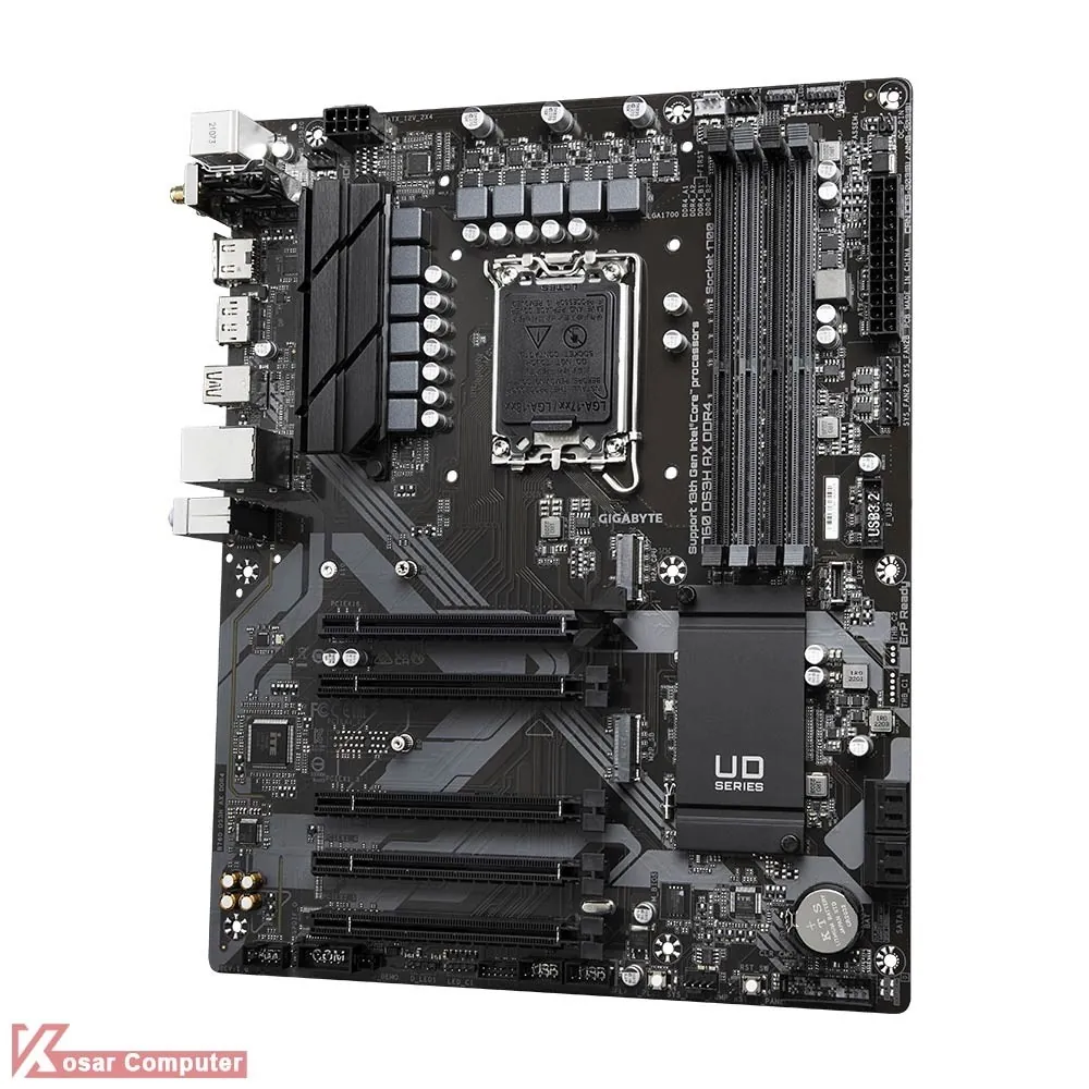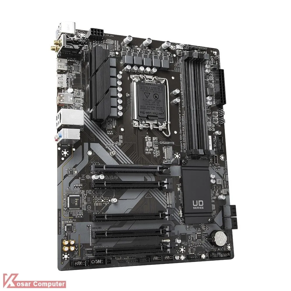 مادربرد بیسیم وایرلس گیگابایت B760 DS3H AX DDR4 از پردازنده های اینتل نسل 12 و 13 و حافظه های رم DDR4 پشتیبانی می کند.همچنین دارای 4 پورت پر سرعت USB 3.2 و خروجی تصویر HDMI و دو عدد DisplayPort موجود است.همچنین 2 عدد کانکتور M.2 NVME هم دارد.
