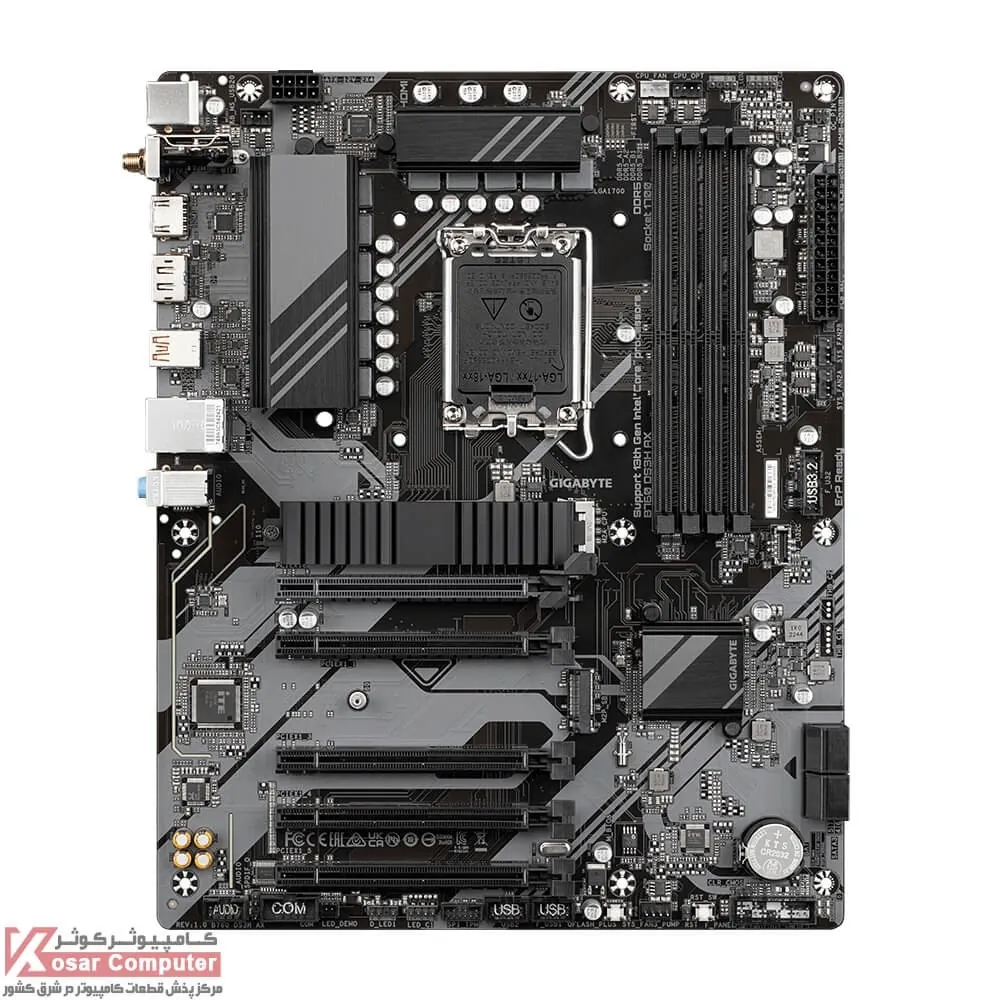 مادربرد گیگابایت GIGABYTE B760 DS3H AX از پردازنده های اینتل نسل 12 , 13 , 14 و از 256 گیگابایت حافظه رم پرسرعت DDR5 پشتیبانی می کند.همچنین دارای 2 پورت پر سرعت USB 3.2 و خروجی DisplayPorts به همراه HDMI موجود است.