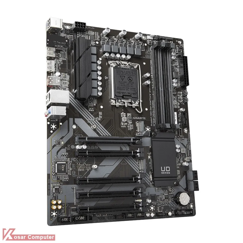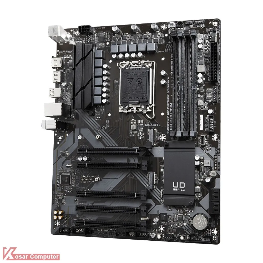 مادربرد گیگابایت B760 DS3H DDR4 از پردازنده های اینتل نسل 12 و 13 و حافظه های رم DDR4 پشتیبانی می کند.همچنین دارای 4 پورت پر سرعت USB 3.2 و خروجی تصویر HDMI و دو عدد DisplayPort موجود است.همچنین 2 عدد کانکتور M.2 NVME هم دارد.