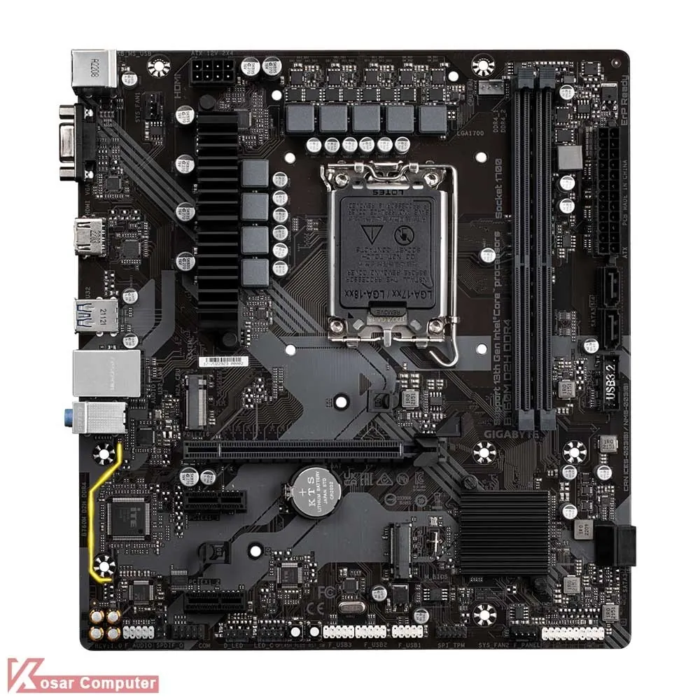 مادربرد گیمینگ گیگابایت B760M D2H DDR4 از پردازنده های اینتل نسل 12 و 13 و از 64 گیگابایت حافظه ی رم پرسرعت DDR4 پشتیبانی می کند.همچنین دارای 4 پورت پر سرعت USB 3.2 و 2 عدد پورت USB 2.0 همراه با خروجی HDMI و VGA است.