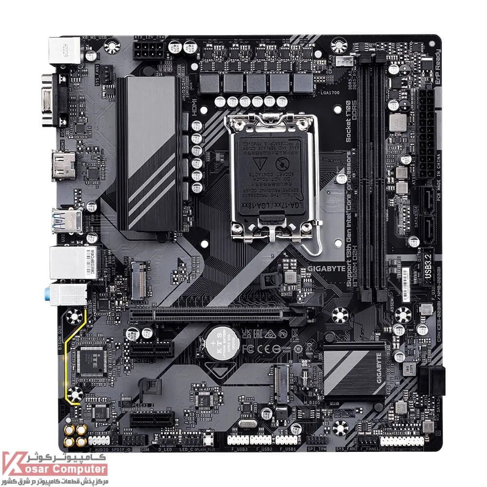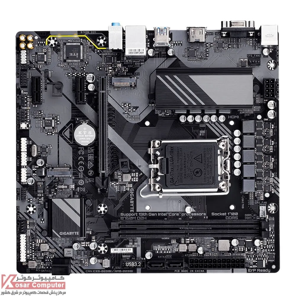 مادربرد گیگابایت B760M D2H DDR5 از پردازنده های اینتل سوکت LGA1700 پشتیبانی می کند.این مادربرد دارای 2 عدد اسلات رم DDR5 است و تا باس 8000 مگاهرتز حافظه رم را می توان روی آن قرار داد.همچنین دارای 2 عدد کانکتور M.2 NVME و 4 عدد پورت SATA می باشد