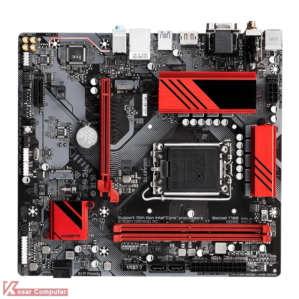 مادربرد بیسیم وایرلس گیگابایت B760M GAMING AC DDR5 از پردازنده های اینتل نسل 12 و 13 و حافظه های رم DDR5 پشتیبانی می کند.همچنین دارای 4 پورت پر سرعت USB 3.2 و خروجی تصویر HDMI و DisplayPort موجود است.همچنین 2 عدد کانکتور M.2 NVME هم دارد.
