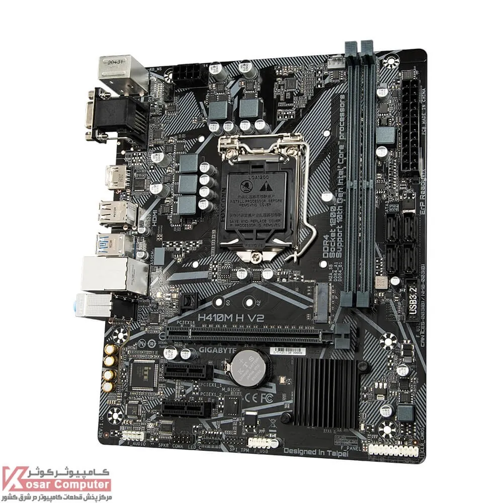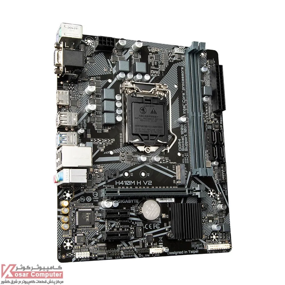 مادربرد گیگابایت H410M-H410M H V2 از سوکت LGA-1200 شرکت اینتل پشتیبانی می کند.بر روی این مادربرد 2 عدد اسلات رم DDR4 موجود است و حداکثر 64 گیگابایت حافظه تا باس 2933 مگاهرتز را پشتیبانی می کند.همچنین در پنل پشتی خروجی HDMI , D-SUB موجود است