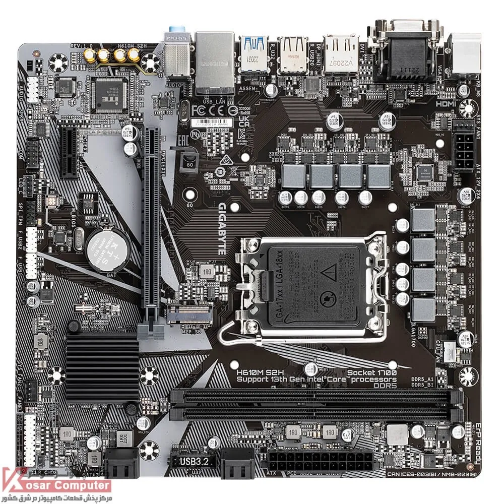 مادربرد حرفه ای گیگابایت GIGABYTE H610M S2H DDR5 از پردازنده های اینتل LGA1700 و از 128 گیگابایت حافظه رم پرسرعت DDR5 تا باس 5600 مگاهرتز پشتیبانی می کند.همچنین دارای 1 عدد کانکتور M.2 NVME به همراه 4 عدد پورت SATA می باشد.