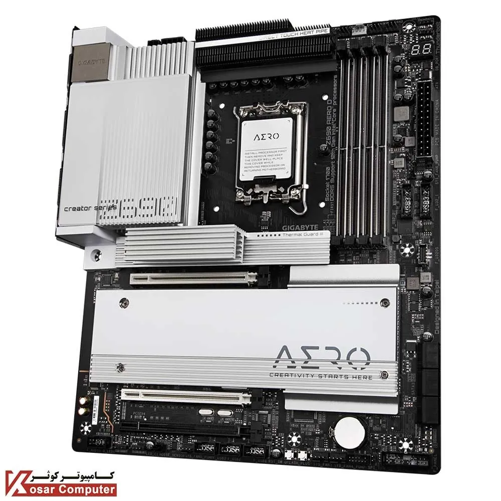 مادربرد گیگابایت Z690 AERO D مجهز به 4 عدد اسلات حافظه DDR5 است و تا باس 6400 مگاهرتز را پشتیبانی می کند.در پنل پشت مادربرد هم 2 عدد پورت شبکه همراه با 6 عدد پورت USB 3.2 موجود است.خروجی تصویر هم پورت های HDMI و Thunderbolt بر روی مادربرد قرار دارد.