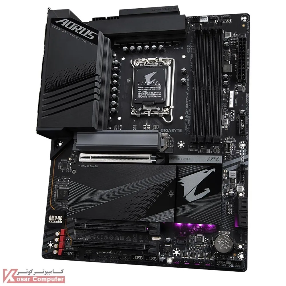 مادربرد گیگابایت GIGABYTE Z790 AORUS ELITE DDR4 از پردازنده های نسل 12 و 13 اینتل 12TH & 13TH و حافظه های رم DDR4 تا باس 5333 پشتیبانی می کند.همچنین دارای 6 پورت پر سرعت USB 3.2 و یک عدد خروجی تصویر HDMI هم می باشد.گارانتی هم 36 ماه آواژنگ است