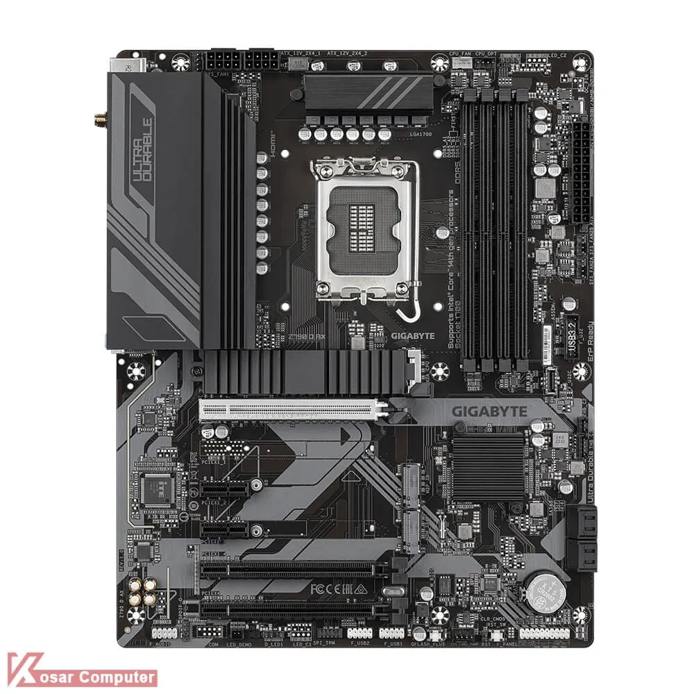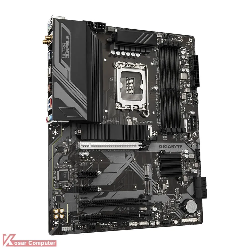 مادربرد گیگابایت Z790 D AX DDR5 از پردازنده های اینتل سوکت LGA1700 پشتیبانی می کند.این مادربرد دارای 4 عدد اسلات رم DDR5 است و تا باس 7600 مگاهرتز حافظه رم را می توان روی آن قرار داد.همچنین دارای 3 عدد کانکتور M.2 NVME و 4 عدد پورت SATA می باشد
