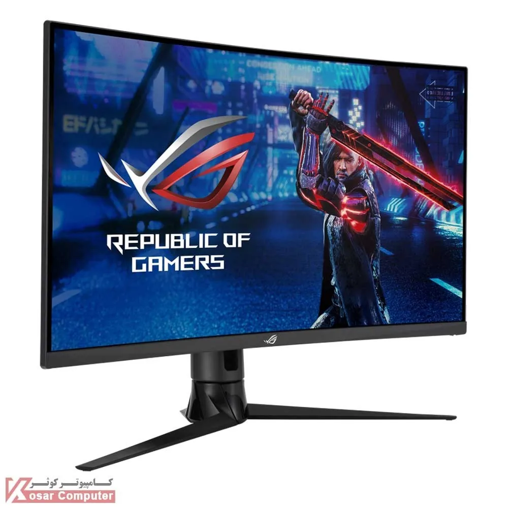 مانیتور ایسوس ROG Strix XG32VC دارای پنل VA و سایز 32 اینچ به صورت WQHD می باشد.نرخ به روز رسانی تصاویر در این مانیتور 170 هرتز است و در پنل پشتی پورت های DisplayPort , HDMI به همراه پورت USB 3.2 و پورت USB TYPE-C می باشد.