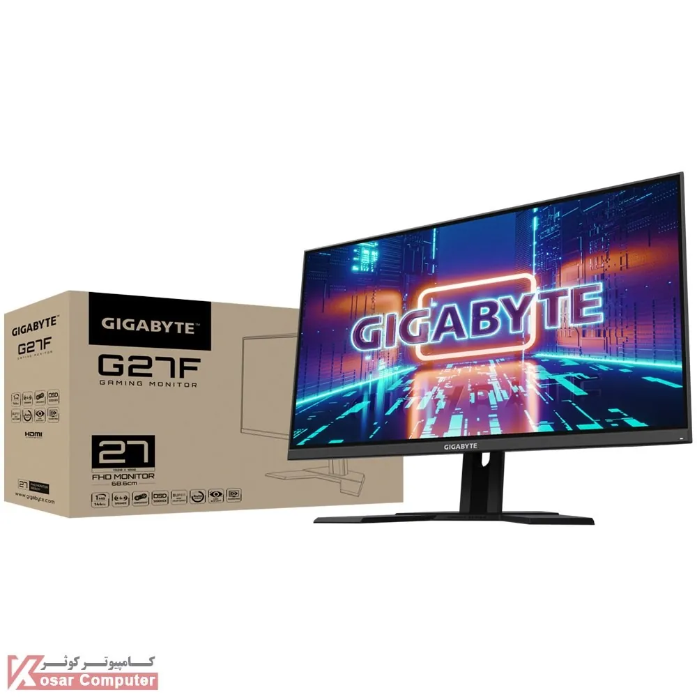 مانیتور G27F Gaming یک مانیتور حرفه ای گیمینگ محصول شرکت گیگابایت (GIGABYTE) است و دارای سرعت تازه سازی 144 هرتز (Refresh Rate = 144HZ) با یک صفحه نمایش 27 اینچ با پنل IPS به صورت فول اچ دی و سرعت پاسخ سریع 1 میلی ثانیه می باشد.