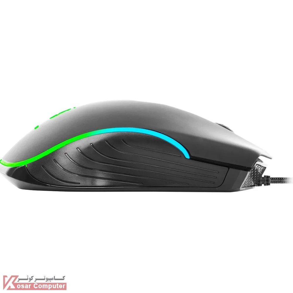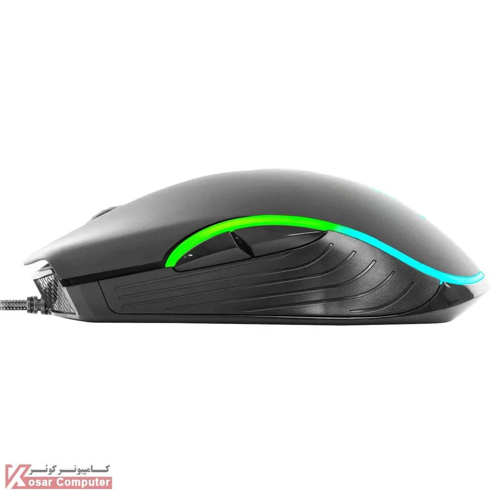 | سایر امکانات | نرخ نمونه برداری (Polling Rate) برابر 125 هرتز پشتیبانی از قابلیت نورپردازی Addressable RGB (ARGB) جنس سیم از روکش کتان بافته شده است مجهز به 7 عدد کلید با قابلیت های تنظیم DPI و backward & Forward مجهز به قابلیت کنترل عملکرد کلید ها و جلوه های نورپردازی ARGB توسط نرم افزار Griffin Panel |