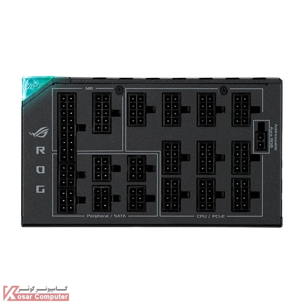 پاور قدرتمند 1600 وات تیتانیوم ایسوس ROG THOR 1600T GAMING به صورت فول ماژولار است و دارای گواهینامه 80PLUS Titanium نیز می باشد.همچنین دارای 1 عدد کانکتور 16 پین برق گرافیک مخصوص سری های RTX 4090 و RTX 4080 نیز می باشد.