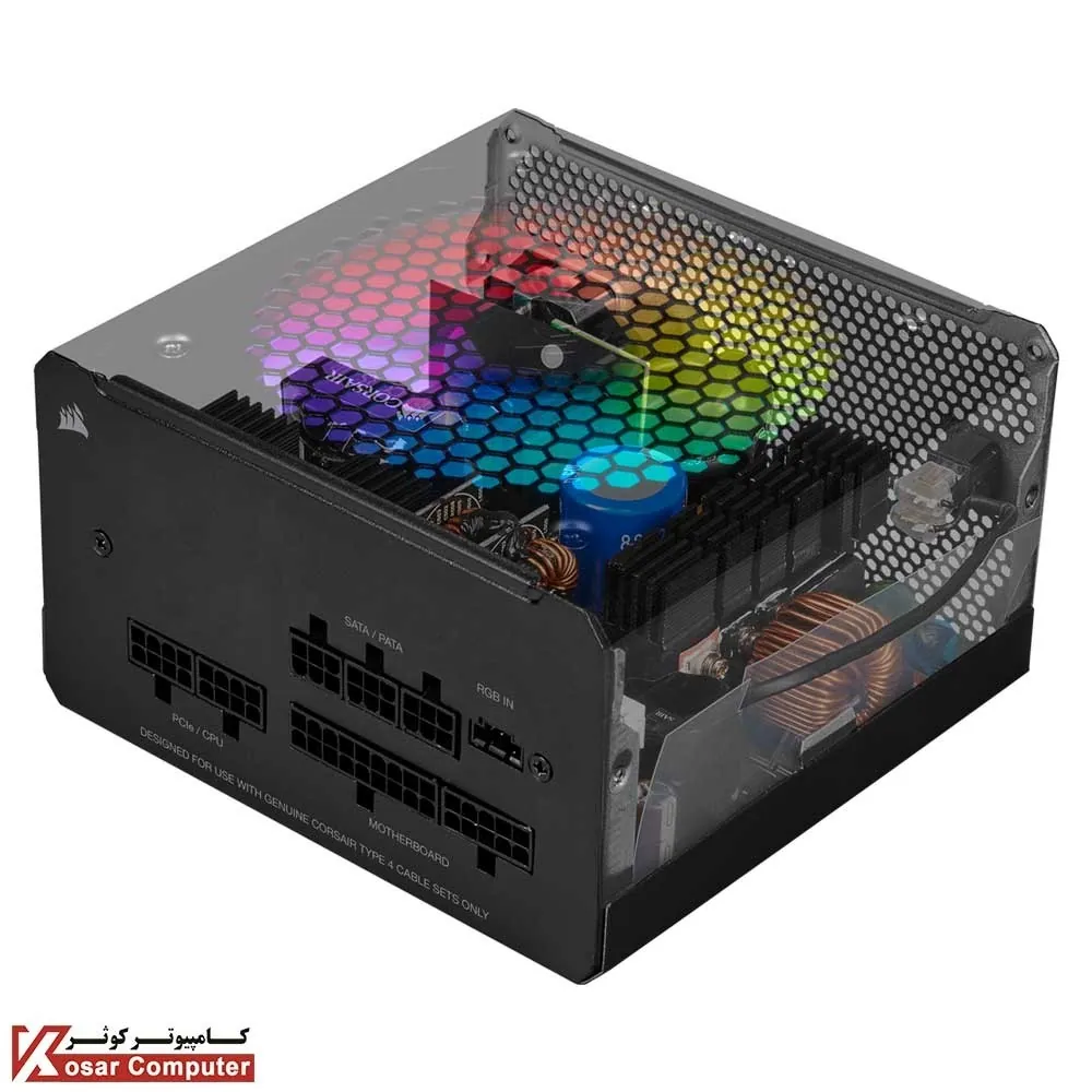 پاور تمام ماژولار 550 وات کورسیر CX550F RGB مجهز به گواهینامه 80PLUS BRONZE است و دارای یک عدد کانکتور پردازنده 4+4 پین و هفت عدد کانکتور ساتا به همراه دو عدد کانکتور PCI 6+2 است.
