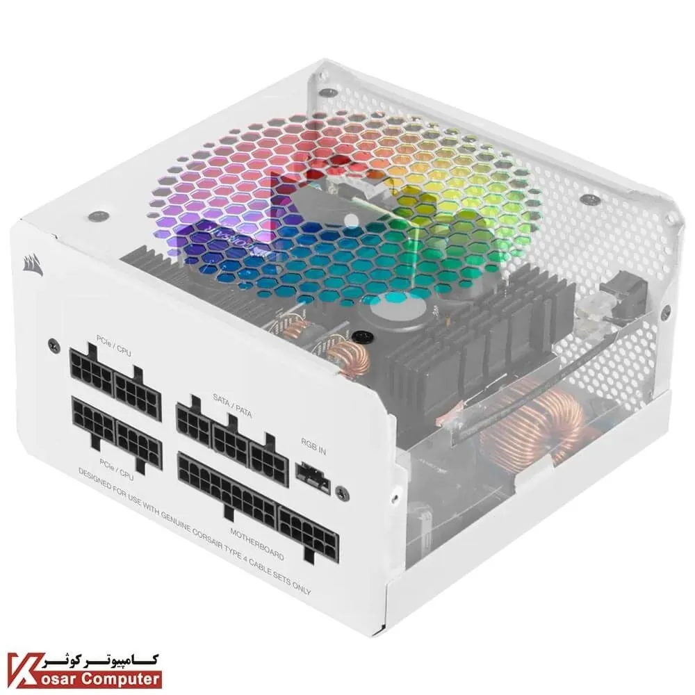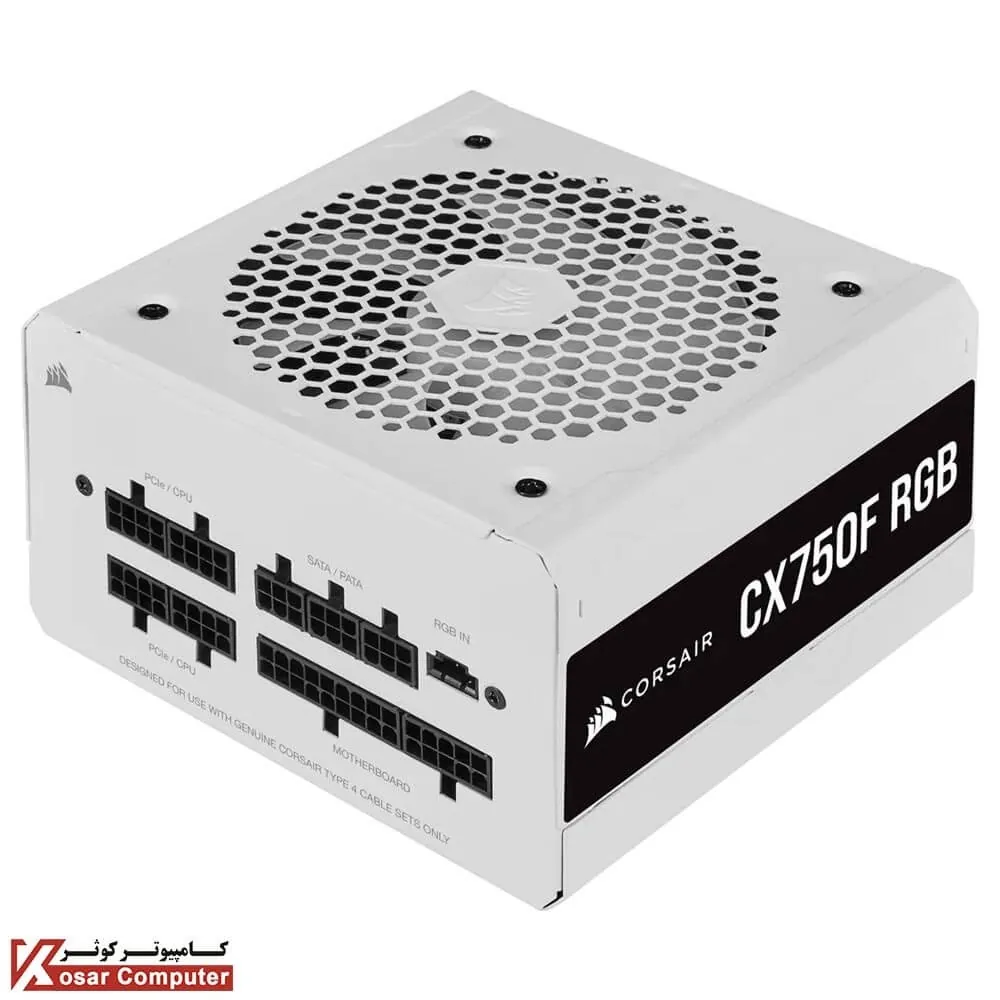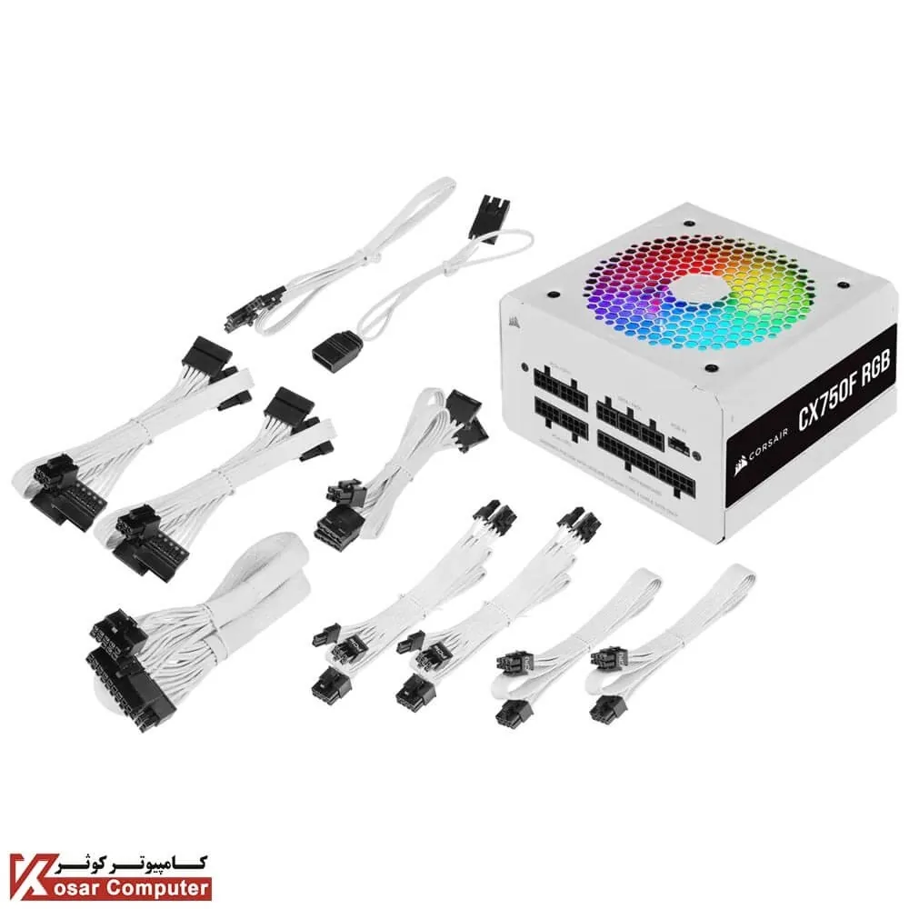 پاور تمام ماژولار 750 وات کورسیر CX750F RGB سفید رنگ و زیبا ، مجهز به گواهینامه 80PLUS BRONZE است و دارای دو عدد کانکتور پردازنده 4+4 پین و هشت عدد کانکتور ساتا به همراه چهار عدد کانکتور PCI 6+2 است.