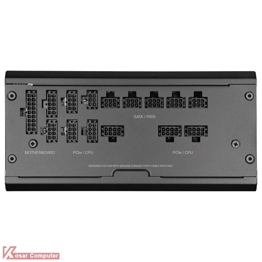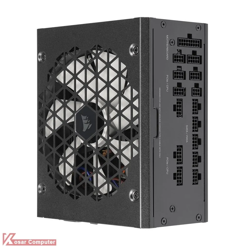 پاور 1000 وات کورسیر RM1000x مجهز به گواهینامه 80PLUS GOLD به صورت فول ماژولار است و دارای دو عدد کانکتور پردازنده 4+4 پین و شانزده عدد کانکتور ساتا به همراه هفت عدد کانکتور PCI 6+2 است.همچنین دارای 1 عدد کانکتور 16 پین برق گرافیک مخصوص سری های