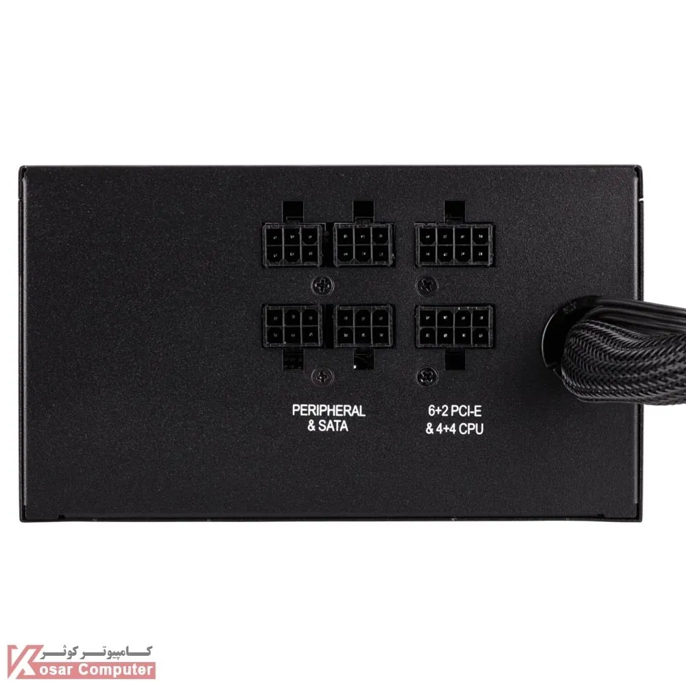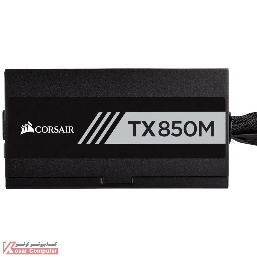 پاور نیمه ماژولار 850 وات کورسیر TX850M مجهز به گواهینامه 80PLUS GOLD به صورت نیمه ماژولار است و دارای یک عدد کانکتور پردازنده 4+4 پین و هشت عدد کانکتور ساتا به همراه چهار عدد کانکتور PCI 6+2 است.در قسمت زیرین هم یک عدد فن 120 میلی متر موجود می باشد.