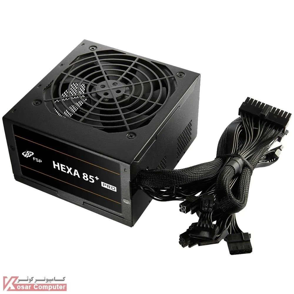 پاور 450 اف اس پی (FSP) مدل HEXA 85+ PRO 450W به صورت غیر ماژولار است و مجهز به گواهینامه برنز 80PLUS BRONZE می باشد.این پاور دارای 1 عدد کانکتور پردازنده 4+4 پین و 5 عدد کانکتور ساتا به همراه 2 عدد کانکتور PCI 6+2 است.