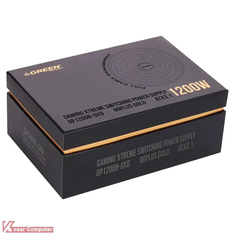 پاور گرین مدل GP1200B-GXD GOLD دارای 1200 وات توان می باشد و از استاندارد ATX 12V v3.1 پشتیبانی می کند.در این پاور یک عدد کانکتور مادربرد 4+20 پین ، 2 عدد کانکتور برق پردازنده 4+4 پین ، 6 عدد کانکتور برق 2+6 PCI-e ، یک عدد 12+4Pin مخصوص کارت گرافیک