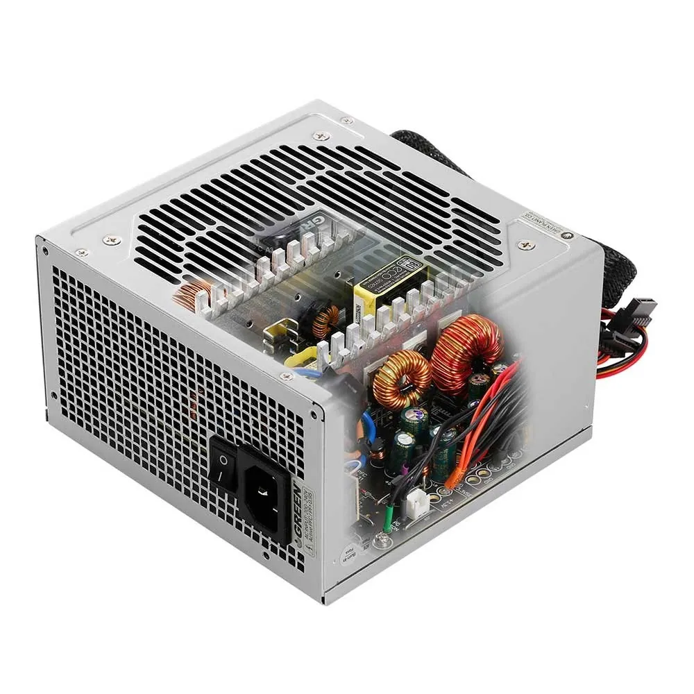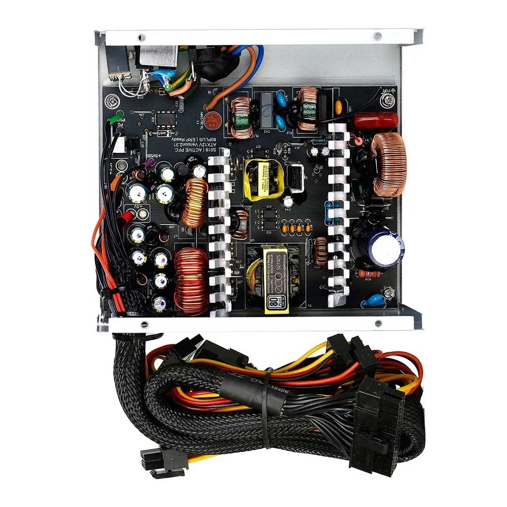 سایر توضیحاتمناسب برای کاربردهای خانگی و اداری بهره‌مندی از خازن‌ درجه 1 تایوانی ساخت کمپانی TEAPO از نوع 85C در بخش اولیه بهره مندی از فیلترهای CLC جهت بهبود دقت در رگولاسیون ولتاژ و کاهش ریپل خروجی بازدهی مصرف انرژی مناسب مطابق با استاندارد 80Plus مجهز به فیلتر دو مرحله ای EMI در بخش ورودی دارای فن فوق‌العاده کم صدا با عملکرد هوشمند