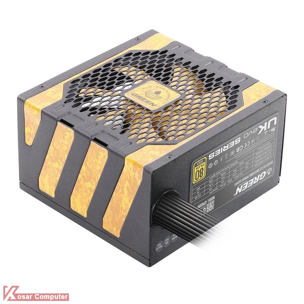 پاور گرین مدل GP600A-UK EVO GOLD دارای 600 وات توان می باشد و به صورت غیر ماژولار است.در این پاور یک عدد کانکتور مادربرد 4+20 پین ، دو عدد کانکتور برق پردازنده 4+4 پین ، دو عدد کانکتور برق 2+6 PCI-e ، چهار عدد کانکتور 4پین Molex و هشت عدد کانکتور SATA موج
