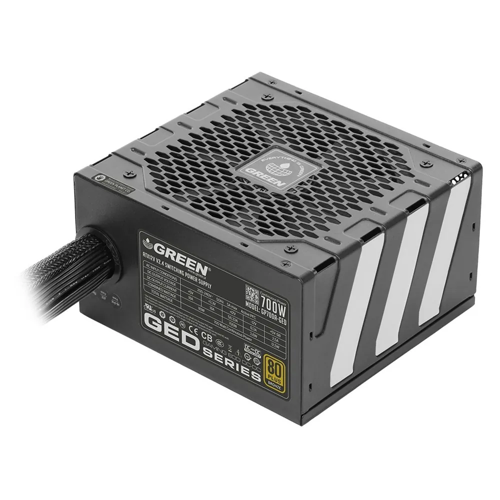 پاور گرین مدل GP700A-GED V3.1 دارای 700 وات توان می باشد و به صورت غیر ماژولار است.این پاور دارای گواهینامه BRONZE می باشد و دارای 1 عدد کانکتور برق 16 پین ، 1 عدد کانکتور 24 پین ، 2 عدد کانکتور 4+4 پین ، 8 عدد کانکتور ساتا ، 4 عدد کانکتور PCI-e 6+2