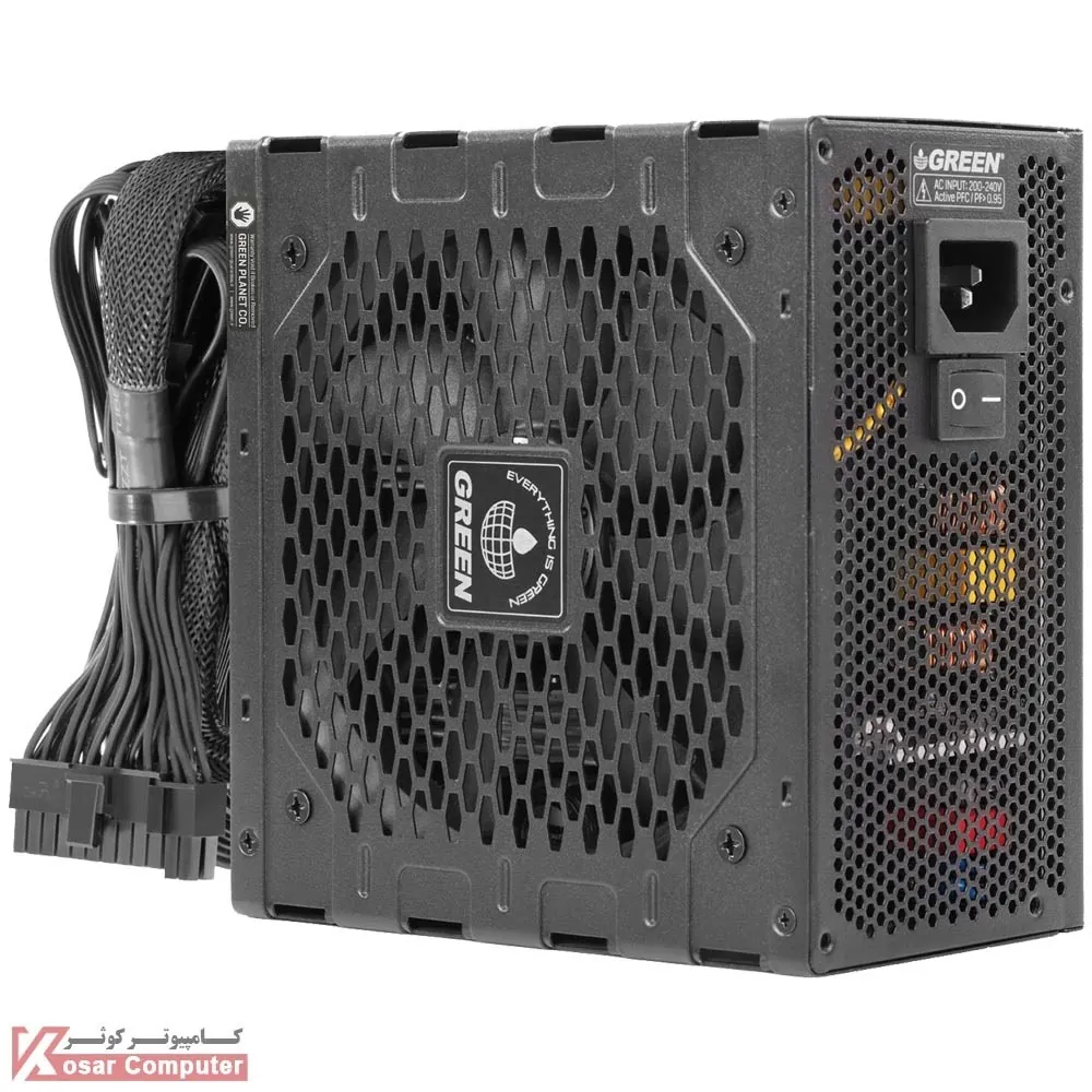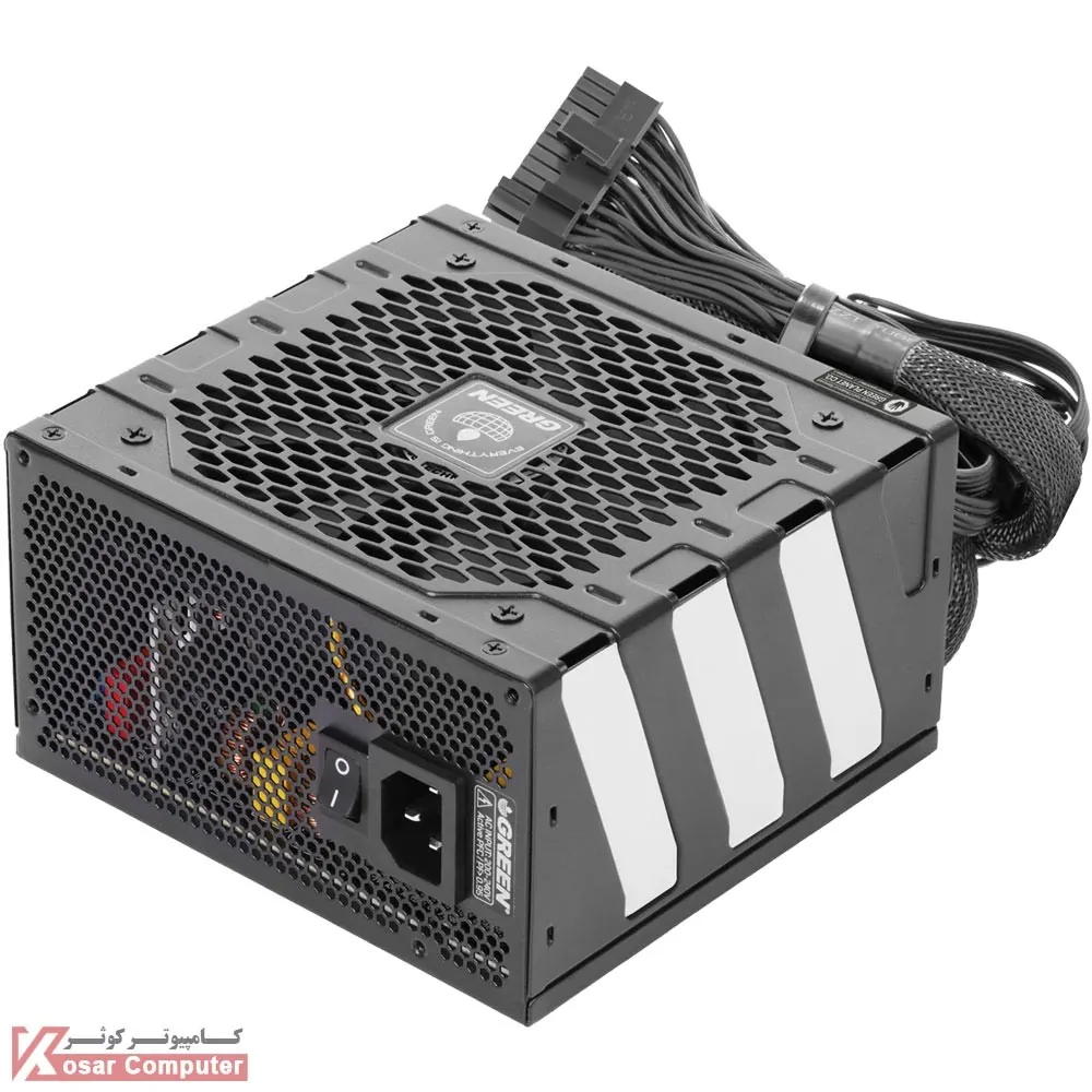پاور گرین مدل GP800A-GED V3.1 دارای 800 وات توان می باشد و به صورت غیر ماژولار است.این پاور دارای گواهینامه BRONZE می باشد و دارای 1 عدد کانکتور برق 16 پین ، 1 عدد کانکتور 24 پین ، 2 عدد کانکتور 4+4 پین ، 8 عدد کانکتور ساتا ، 4 عدد کانکتور PCI-e 6+2