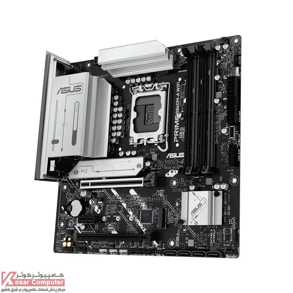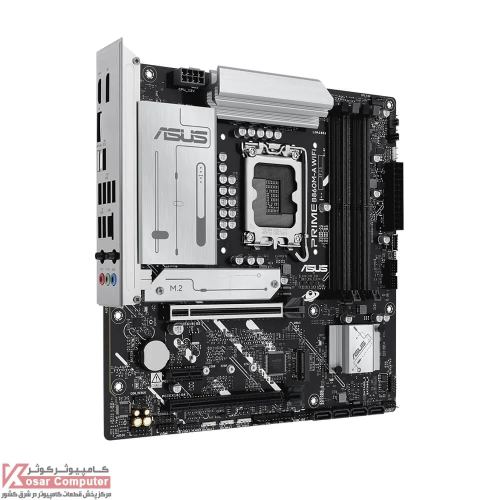 مادربرد حرفه ای ایسوس PRIME B860M-A WIFI از پردازنده های ULTRA CORE اینتل پشتیبانی می کند.این مادربرد دارای 4 عدد اسلات رم DDR5 است و تا حداکثر باس 8666 مگاهرتز را می توان روی آن قرار داد.