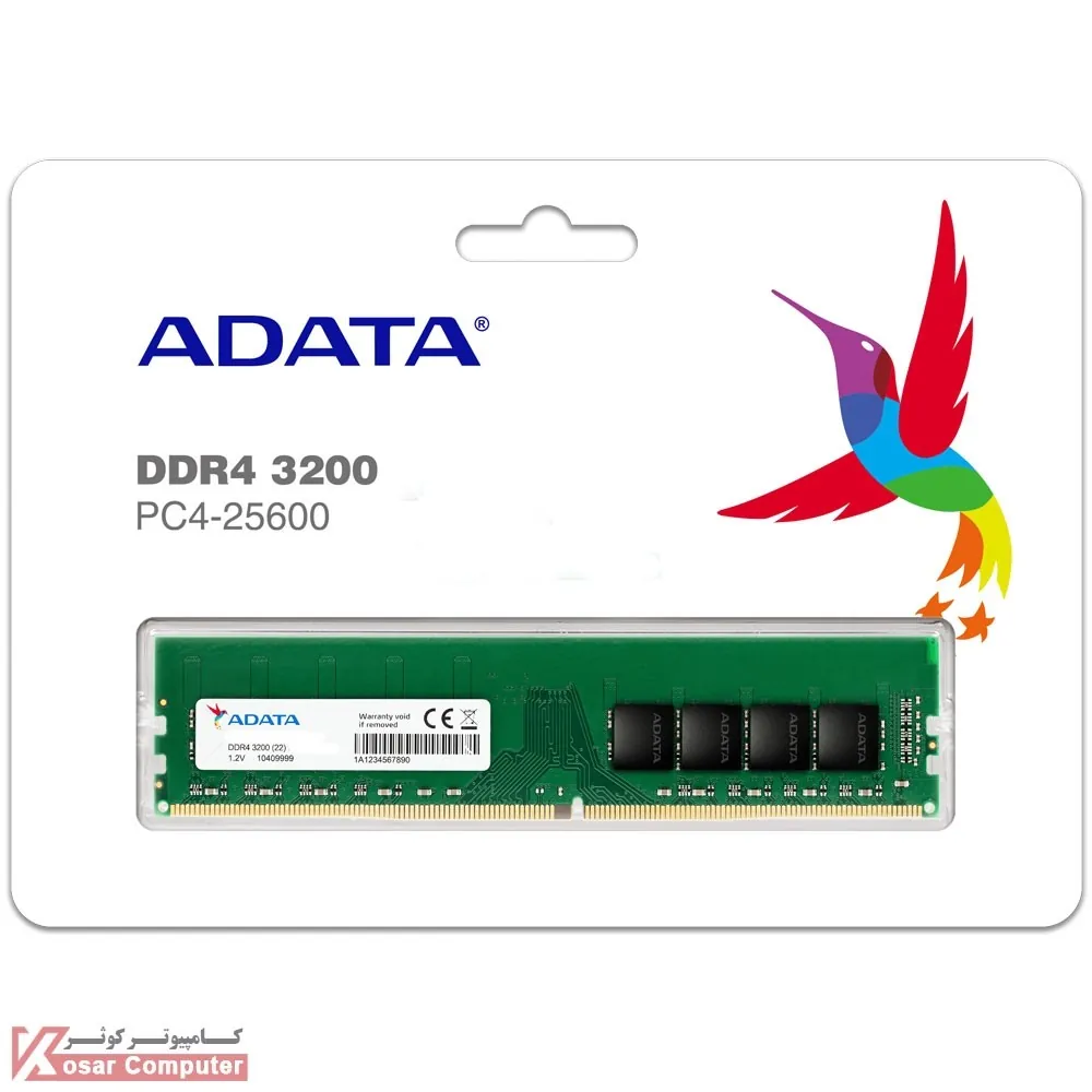 حافظه رم سرعت بالای ای دیتا در ظرفیت 16 گیگابایت از نوع DDR4 و باس 3200 مگاهرتز به صورت تک ماژول می باشد و برای سیستم های خانگی و اداری مناسب است.همچنین دارای تاخیر CL22 و ولتاژ 1.2 ولت می باشد.
