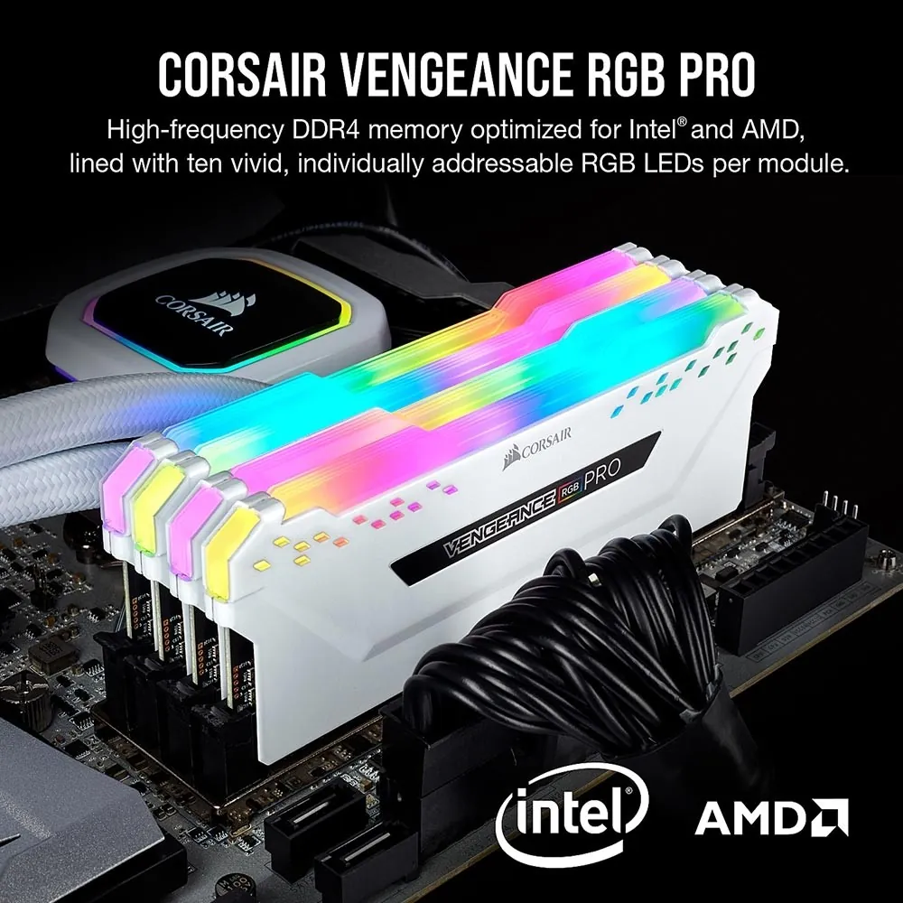 حافظه رم کورسیر Vengeance PRO RGB WHITE دارای 16 گیگابایت حافظه 2 کانال (2 عدد رم 8 گیگابایت داخل یک پک) می باشد.این حافظه از نوع DDR4 است و با توجه به قابلیت RGB که در این رم است جلوه ی زیبایی به سیستم شما می بخشد.این حافظه رم قدرتمند 3600 مگاهرتز