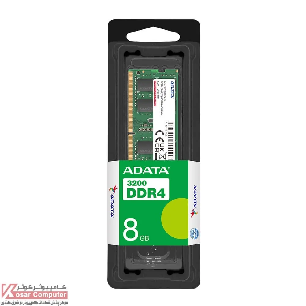 حافظه رم ای دیتا مخصوص لپ تاپ در ظرفیت هشت گیگابایت از نوع DDR4 و باس 3200 مگاهرتز به صورت تک ماژول می باشد و بر روی تمامی لپ تاپ های DDR4 قابل نصب است.همچنین دارای تاخیر CL22 و ولتاژ 1.20 ولت می باشد.
