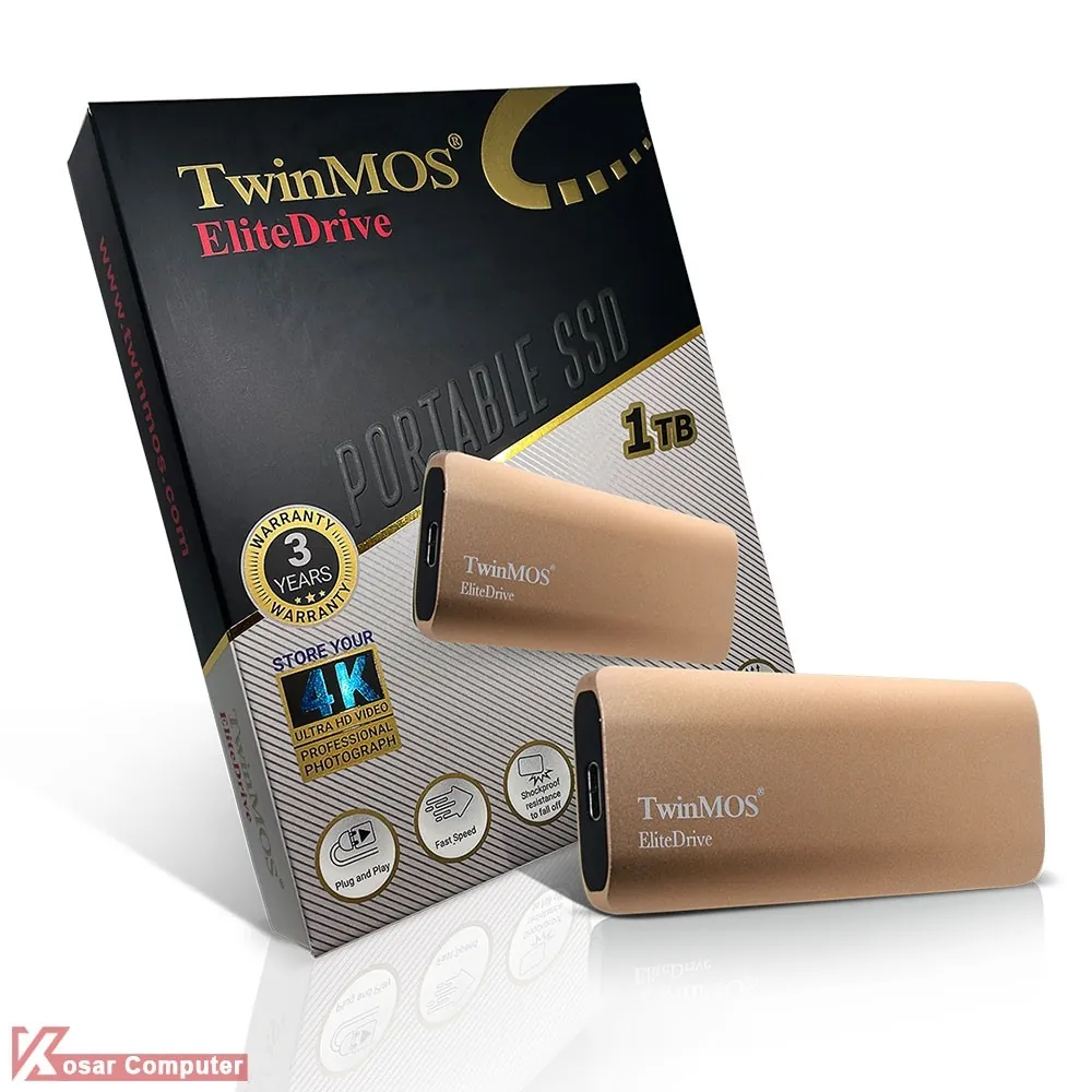 حافظه ی اس اس دی اکسترنال تویین موس TwinMOS Portable دارای ظرفیت 1 ترابایت است و توسط رابط پر سرعت USB 3.2 Type-C به سیستم متصل می شود و سرعت بسیار بالایی در انتقال اطلاعات شما دارد.همچنین وزن اس اس دی هم سبک است و می توان همیشه به همراه خود داشته باشیم.