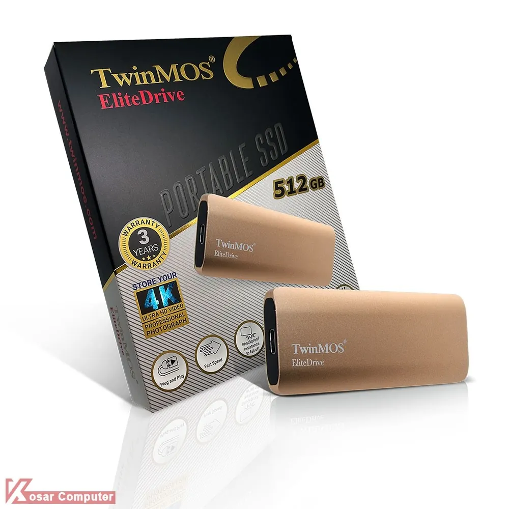 حافظه ی اس اس دی اکسترنال تویین موس TwinMOS Portable دارای ظرفیت 512 گیگابایت است و توسط رابط پر سرعت USB 3.2 Type-C به سیستم متصل می شود و سرعت بسیار بالایی در انتقال اطلاعات شما دارد.همچنین وزن اس اس دی هم سبک است و می توان همیشه به همراه خود داشته باش