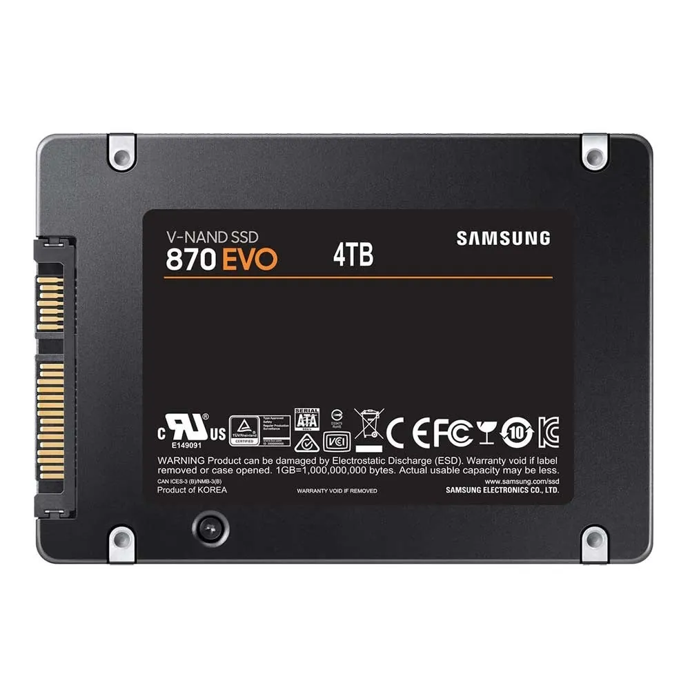 اس اس دی سامسونگ مدل evo 870 دارای ظرفیت 4 ترابایت حافظه و قالب 2.5 اینچ می باشد و توسط رابط ساتا (Sata) می توان این حافظه پر سرعت را به کامپیوتر و لپ تاپ متصل کرد.سرعت خواندن و نوشتن در این درایو اس اس دی برابر 560 و 530 مگابایت بر ثانیه است.