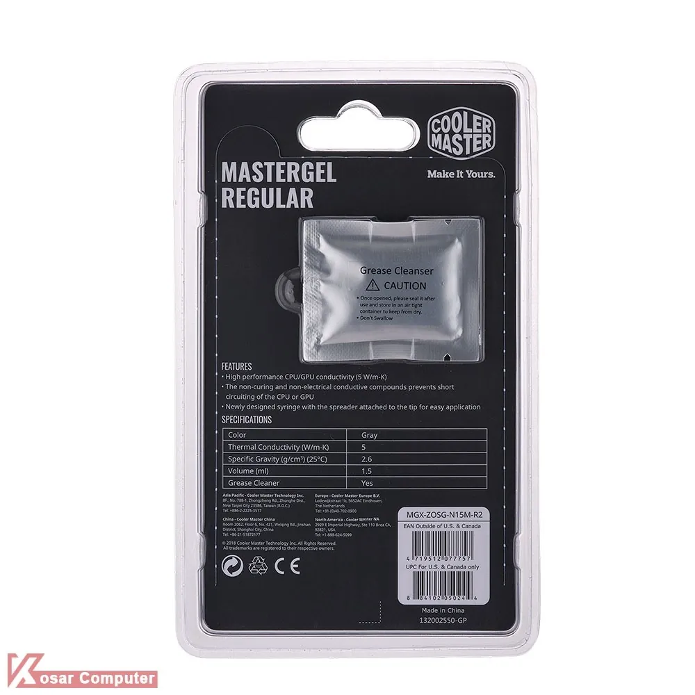 خمیر سیلیکون کولر مستر COOLER MASTER MASTERGEL REGULAR دارای کیفیت بالایی است و رسانایی بالایی برای کمک به انتقال حرارت را دارد.این محصول برای اکثر پردازنده های ای ام دی و اینتل و بویژه کارت های گرافیک استفاده می شود.