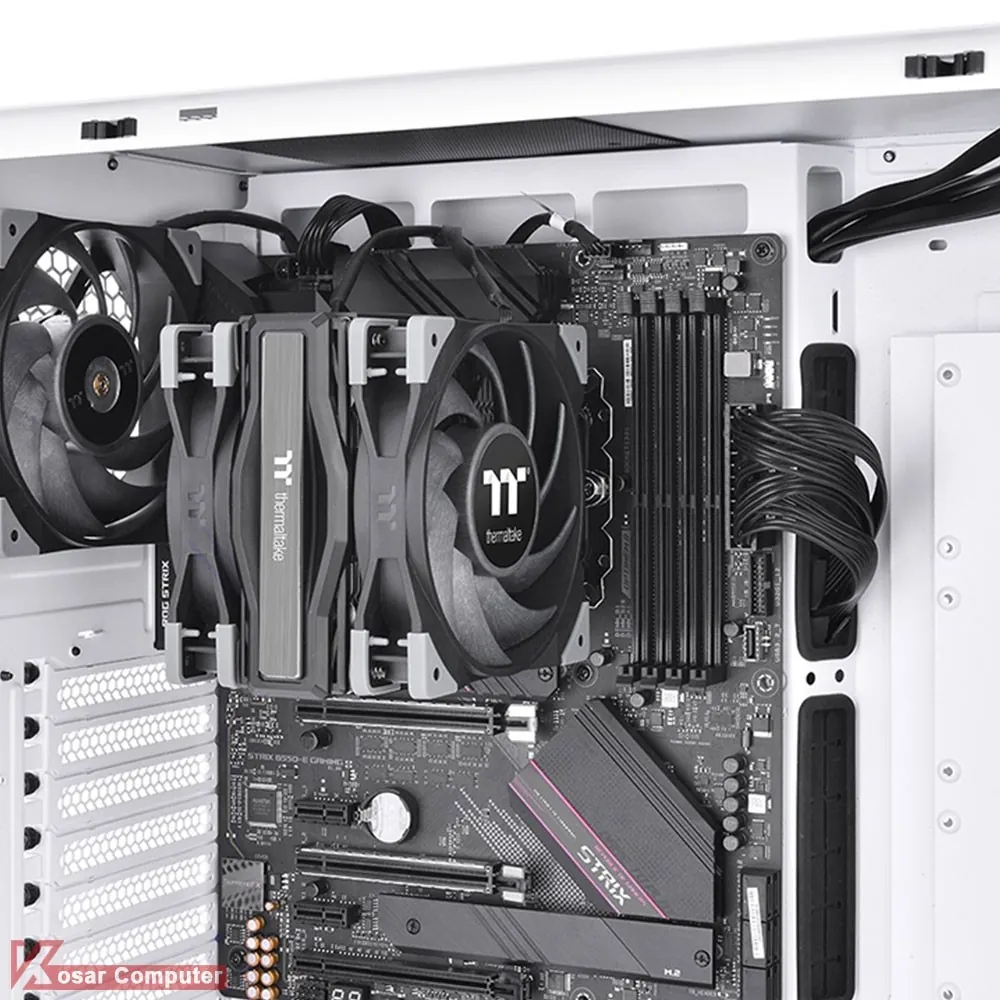 خنک کننده بادی ترمالتیک مدل THERMALTAKE TOUGHAIR 510 مجهز به یک هیت سینک آلومینیومی و 2 عدد فن 120 ملی متری است و دارای سرعت بالای 2000 دور بر دقیقه می باشد.این کولینگ با اکثر پردازنده های اینتل LGA1700 و ای ام دی AM5