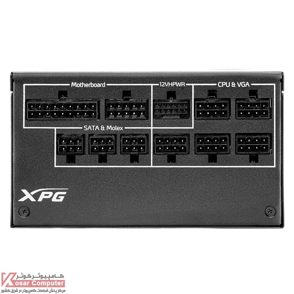 پاور ایکس پی جی مدل CYBERCORE II 1000W Platinum دارای 1200 وات توان می باشد.در این پاور یک عدد کانکتور مادربرد 24 پین ، 2 عدد کانکتور برق پردازنده عدد 8 پین ، یک عدد کانکتور 16 پین برق کارت گرافیک ، شش عدد کانکتور برق 2+6 PCI-e و هشت عدد کانکتور SATA
